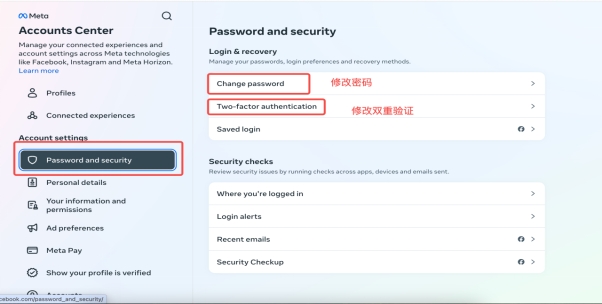 FB账号稳定在指纹环境2~3天之后,可以逐步进行密码和双重验证的修改